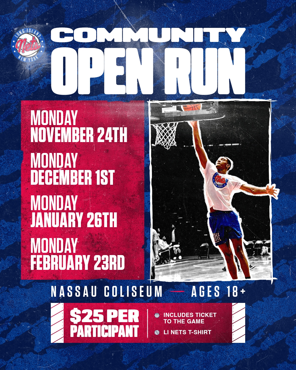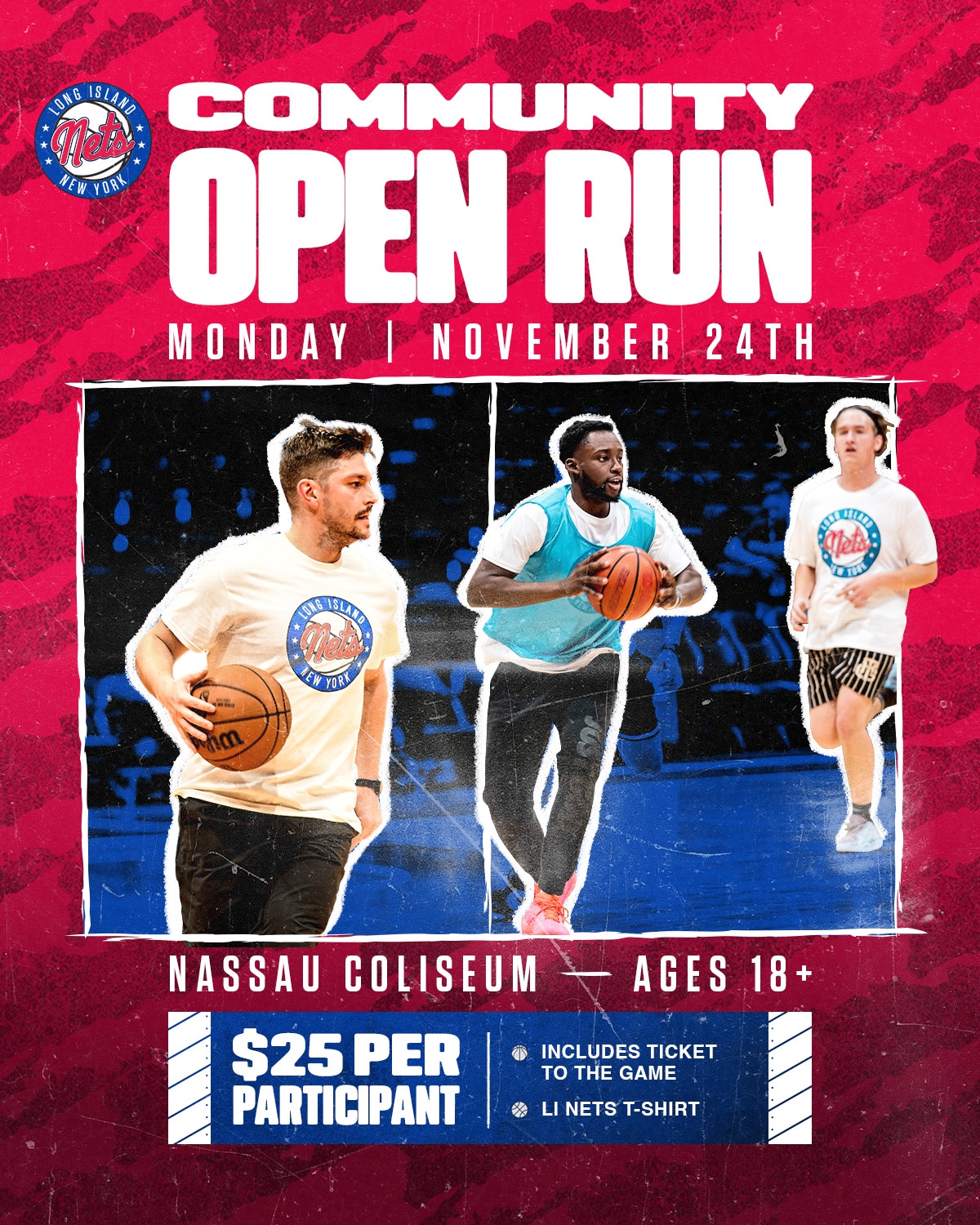 $25 per participant includes a ticket to the game and a Long Island Nets t-shirt. Spots are limited!