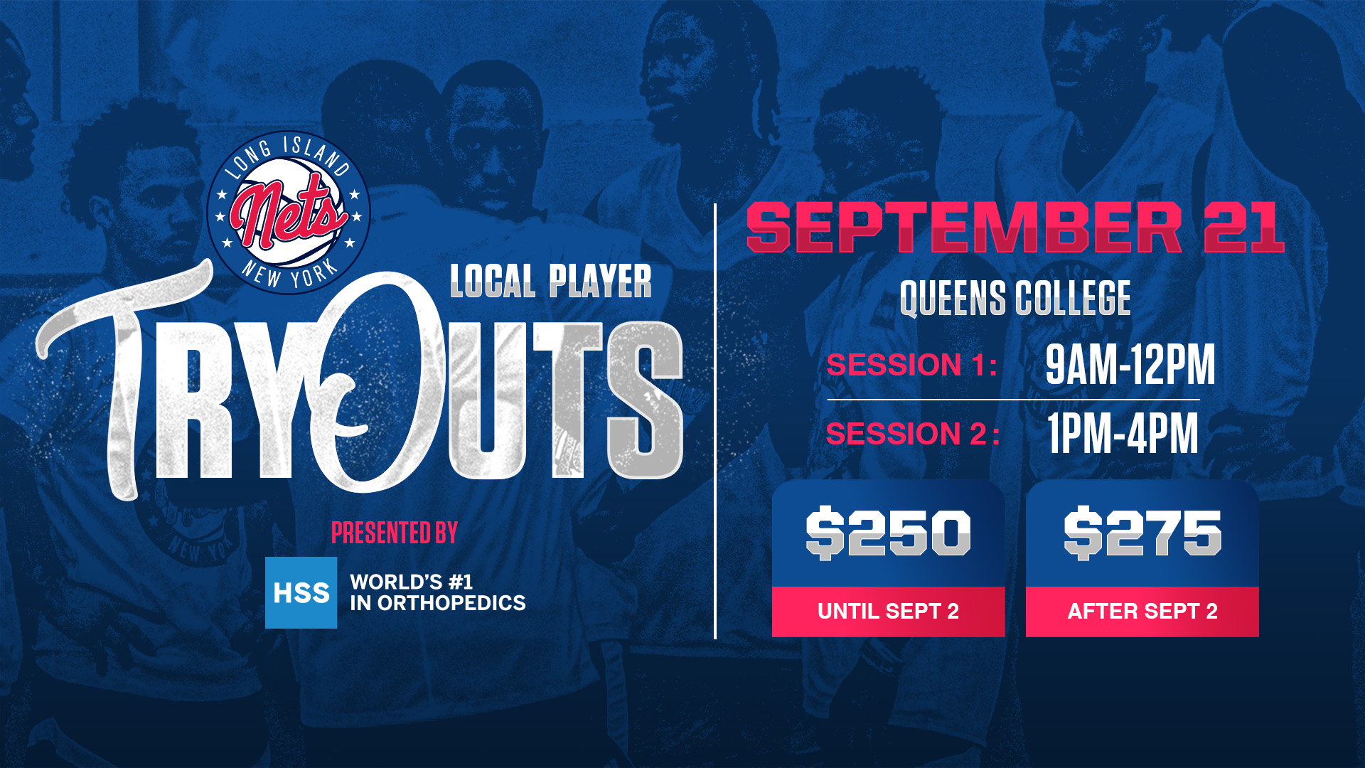 LONG ISLAND NETS TO HOLD LOCAL PLAYER TRYOUTS, PRESENTED BY HSS, AT QUEENS COLLEGE ON SEPT. 21